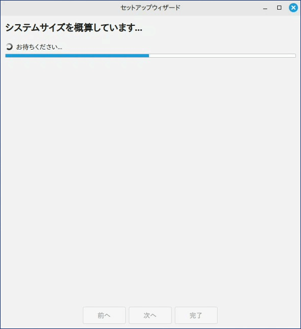 この段階ではまだインストールは始まっておらず、USB上の仮想システムがRAM上で動いています。
