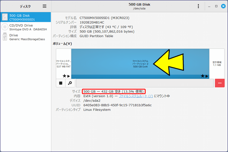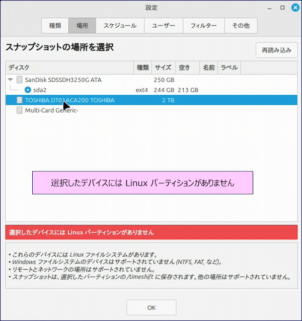 • BTRFSでフォーマットしたパーティションがある場合のみ選択可能。