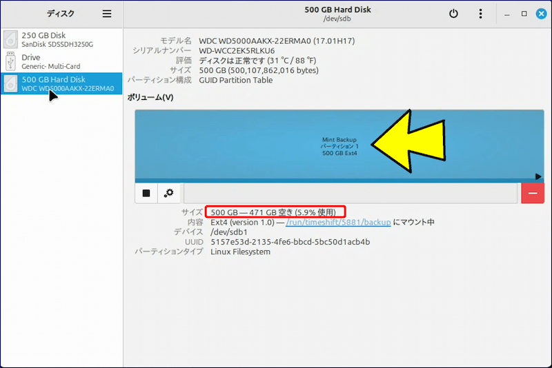 • 左のサイドバーでバックアップ先ディスクをクリック。