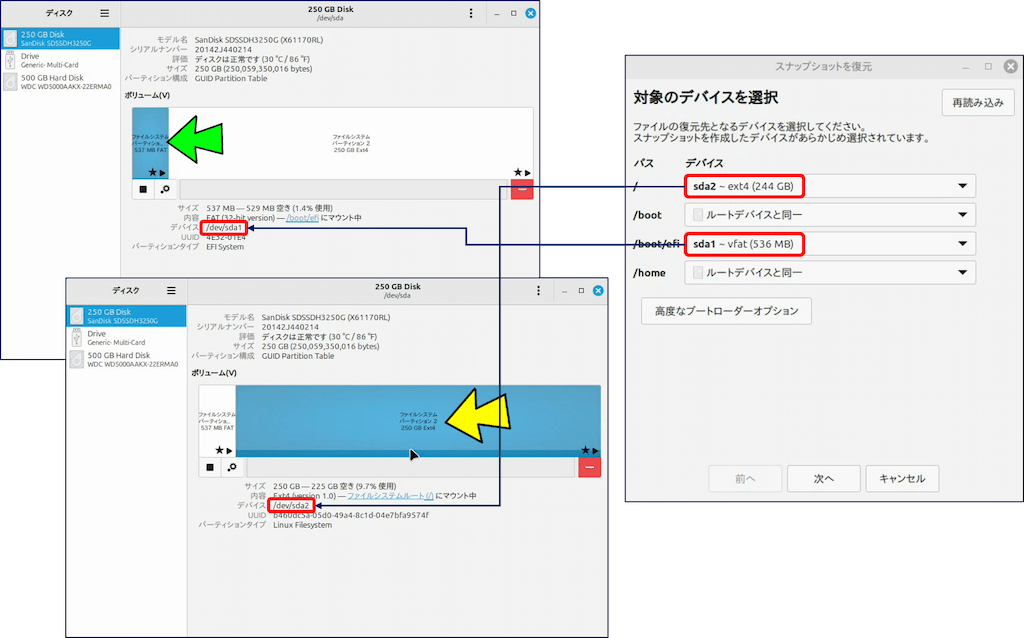 保存先ドライブをマウントしてスナップショットを読み込み。