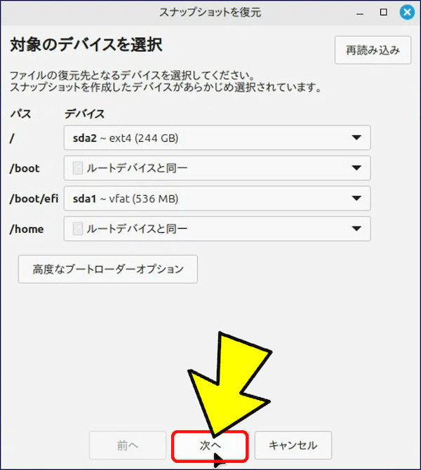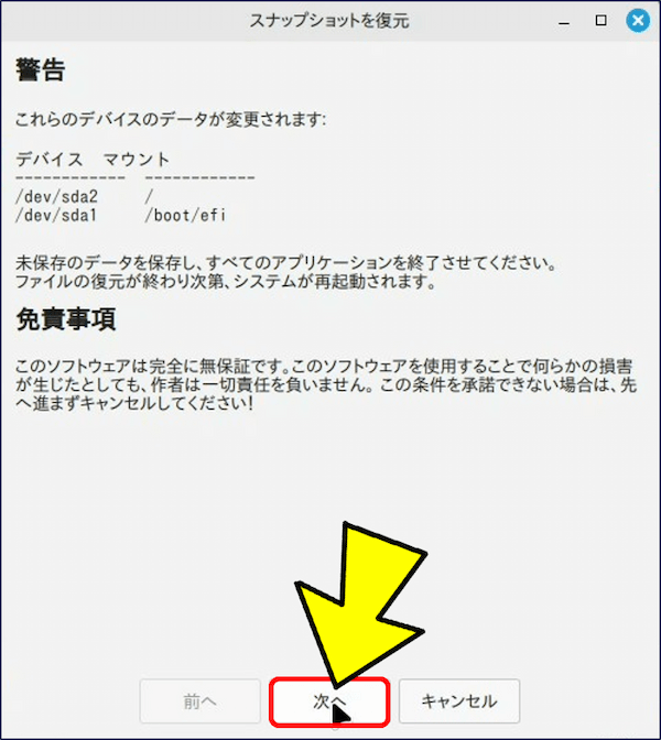 もしシステムが壊れた・起動しない場合、Timeshiftを使って以前の状態に戻せます。