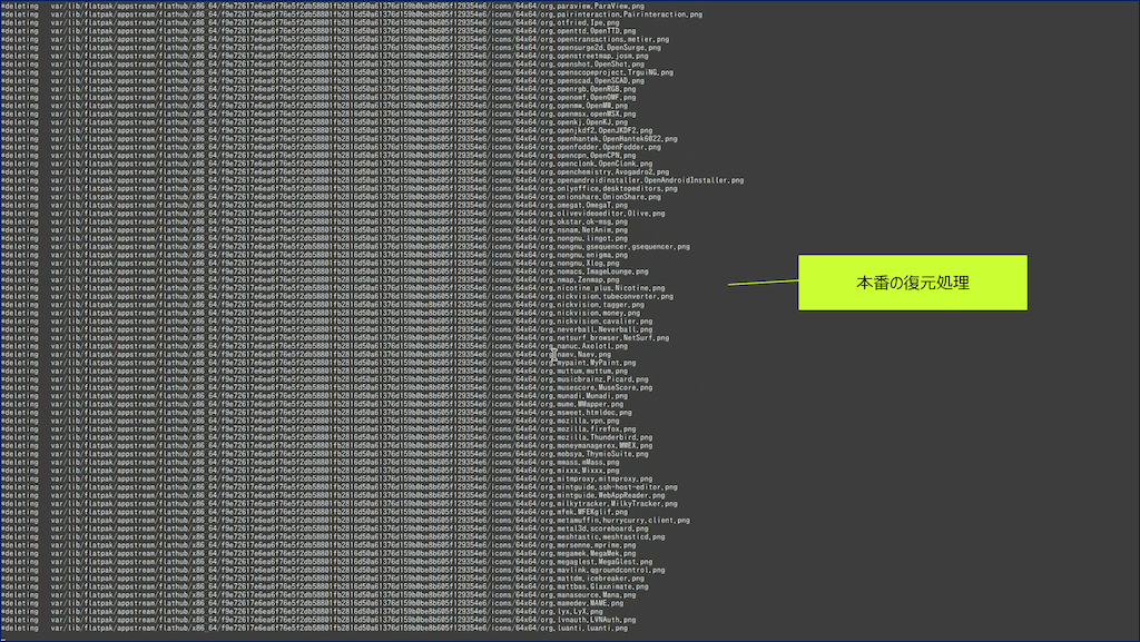 2回目の実行 実際の復元 実際にファイルを書き換える。