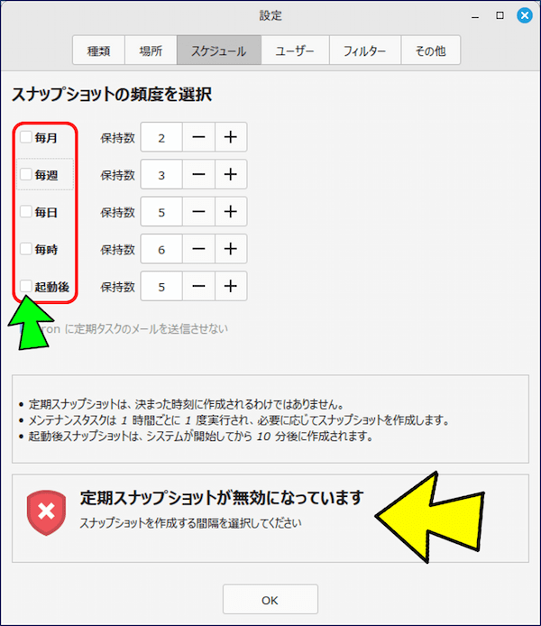 🟢 ① 自動スナップショットを無効にする(一般的な方法)。