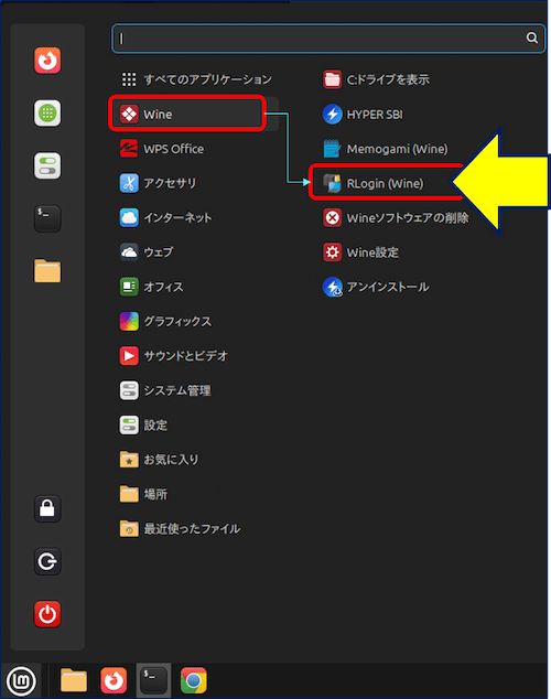 ターゲットアプリの Rlogin (Windows用SSHクライアント) は、Linux版はなく Windows 専用のため、Wine で利用せざるを得ない。