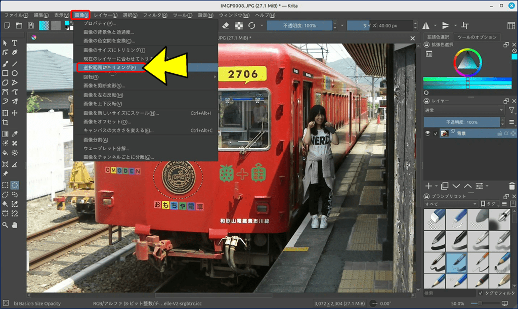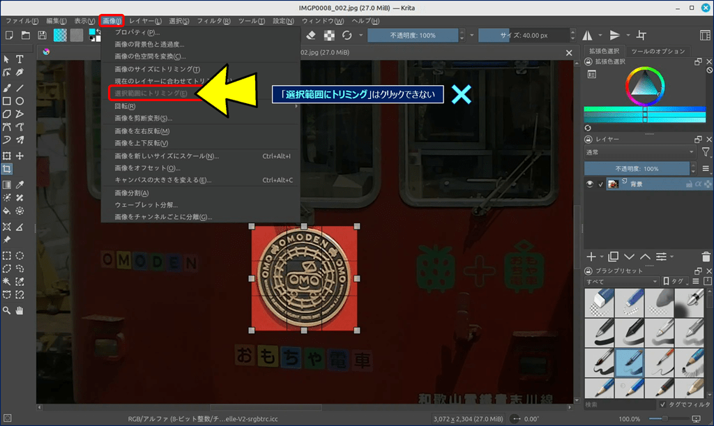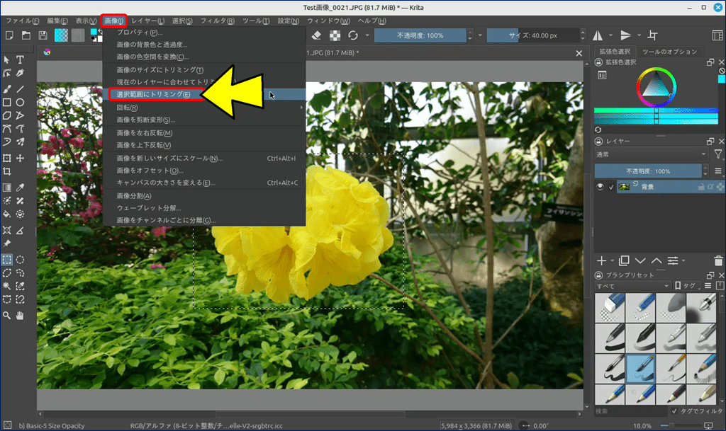 🟢 A. 「画像(Image)」タブ→「選択範囲にトリミング(Trim to Selection)」