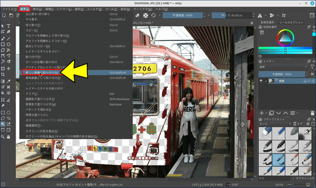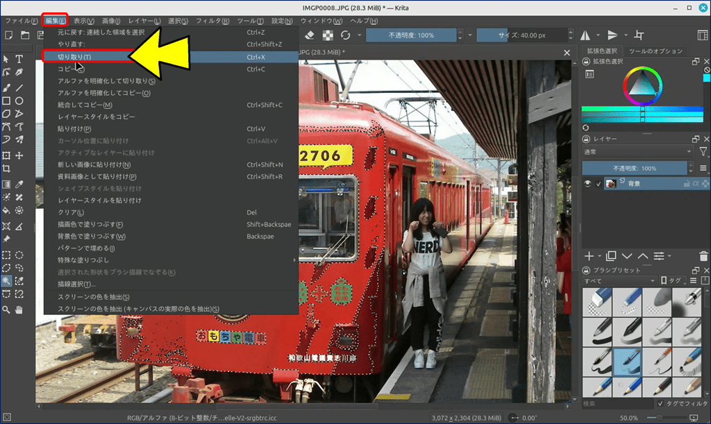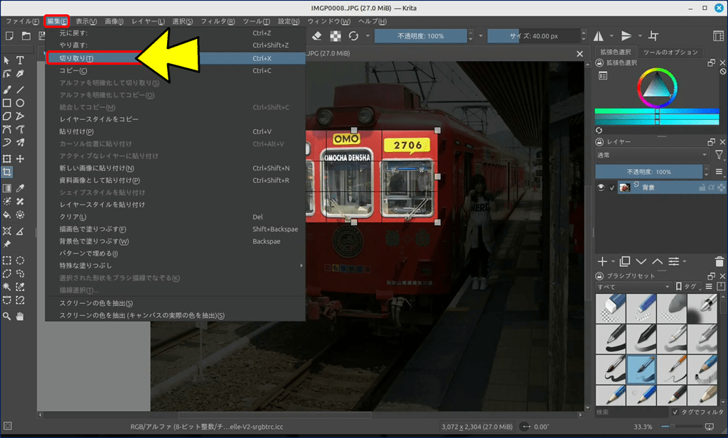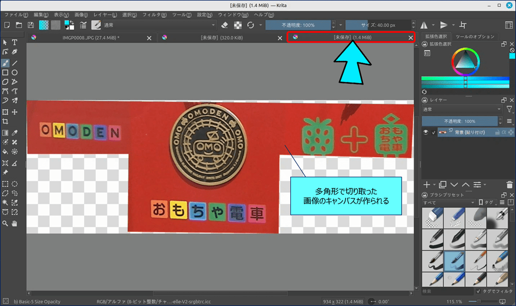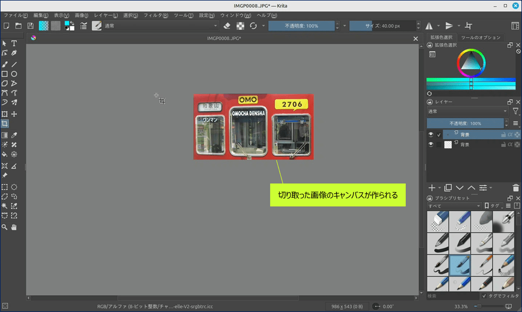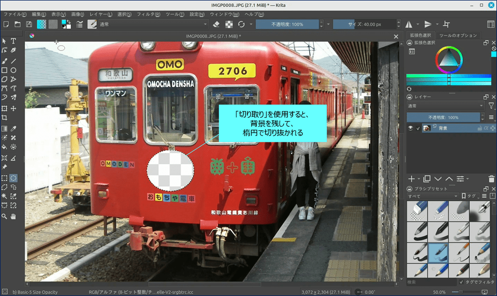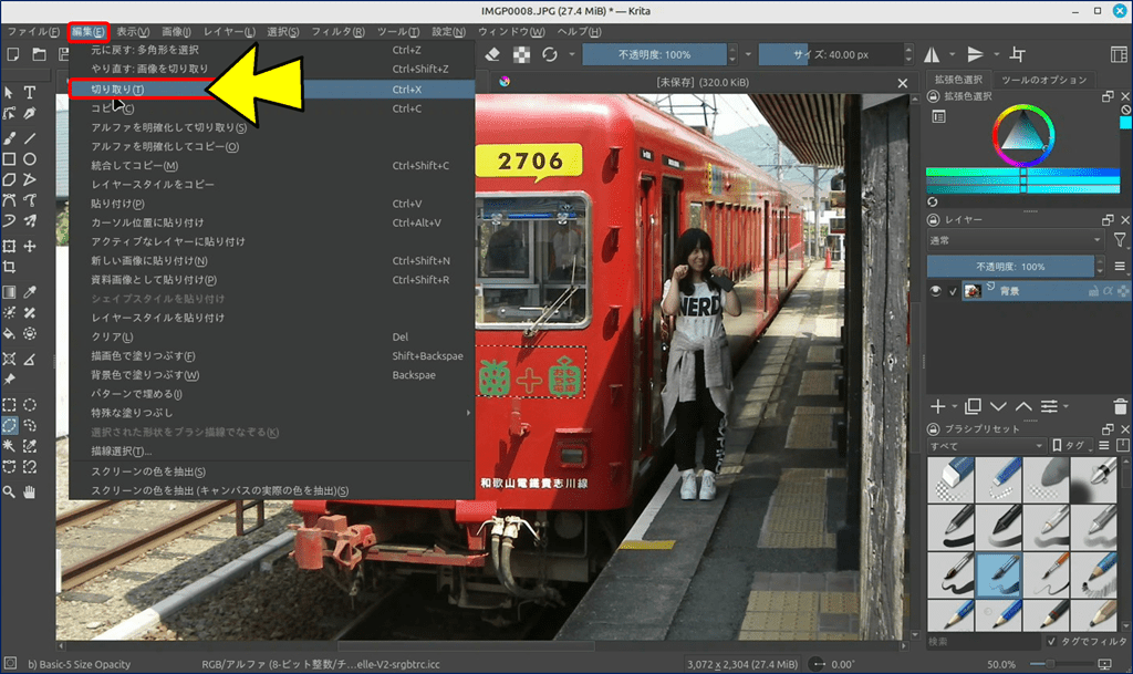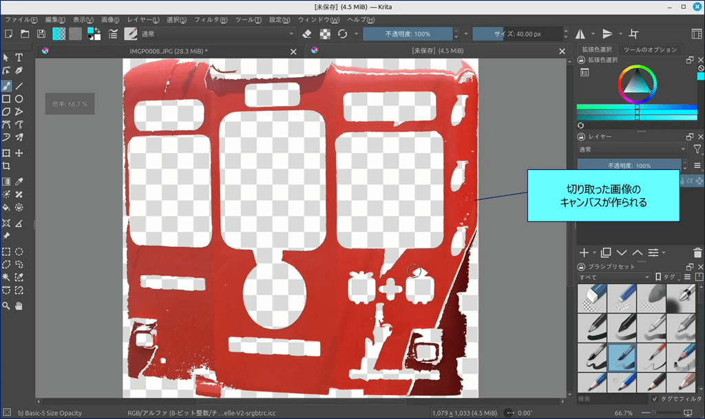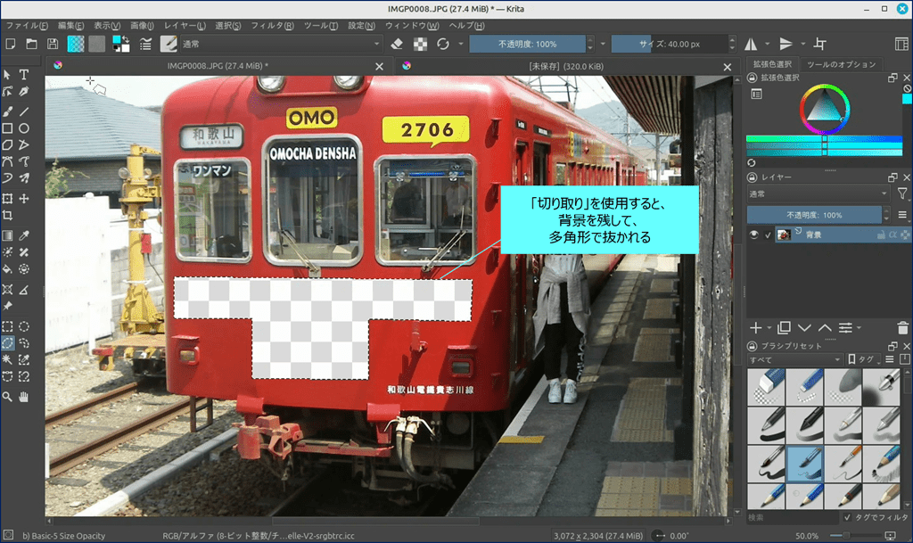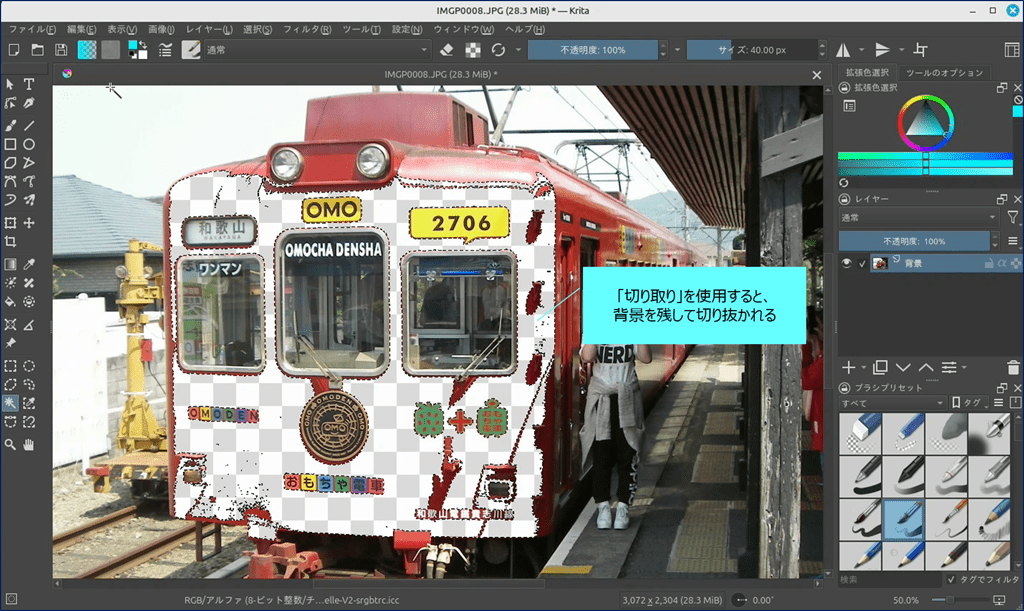 「Krita」は、MSペイントとは比較にならない高機能のグラフィック編集ソフトで、レイヤーの切り取りにも対応している。