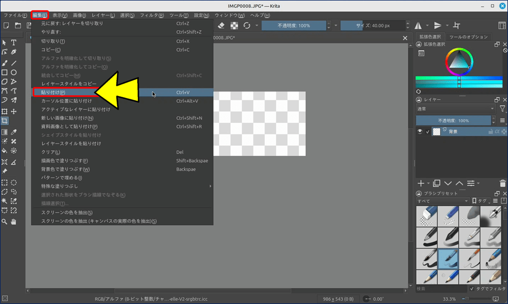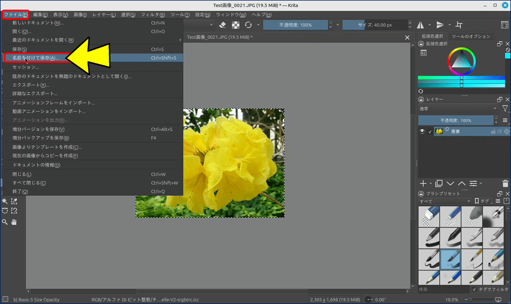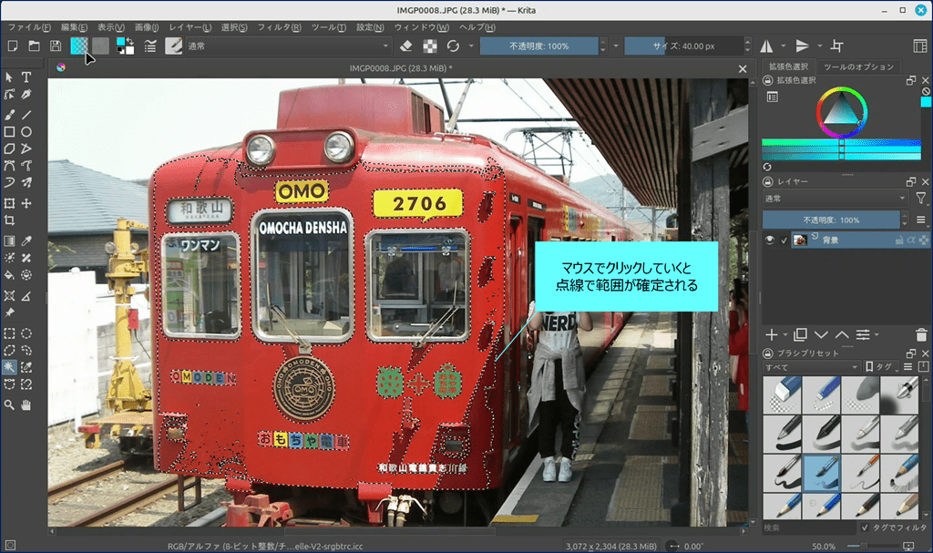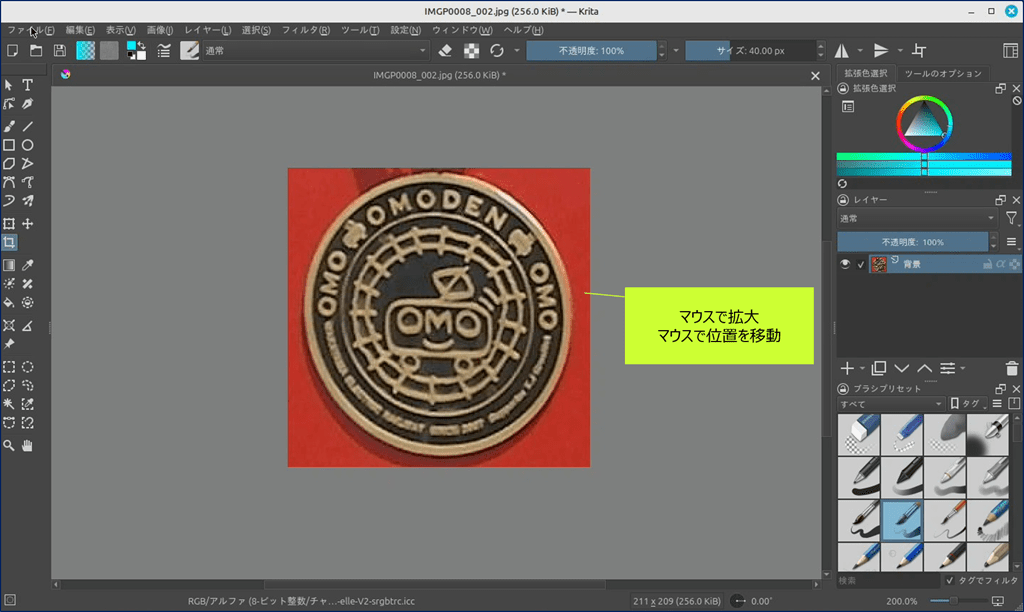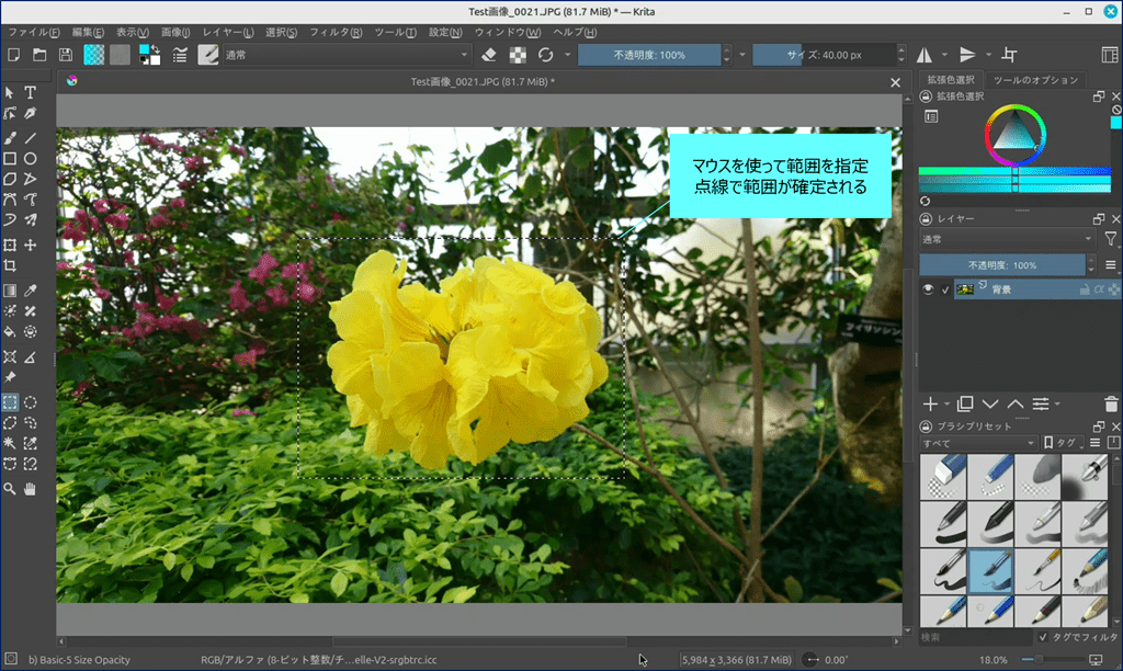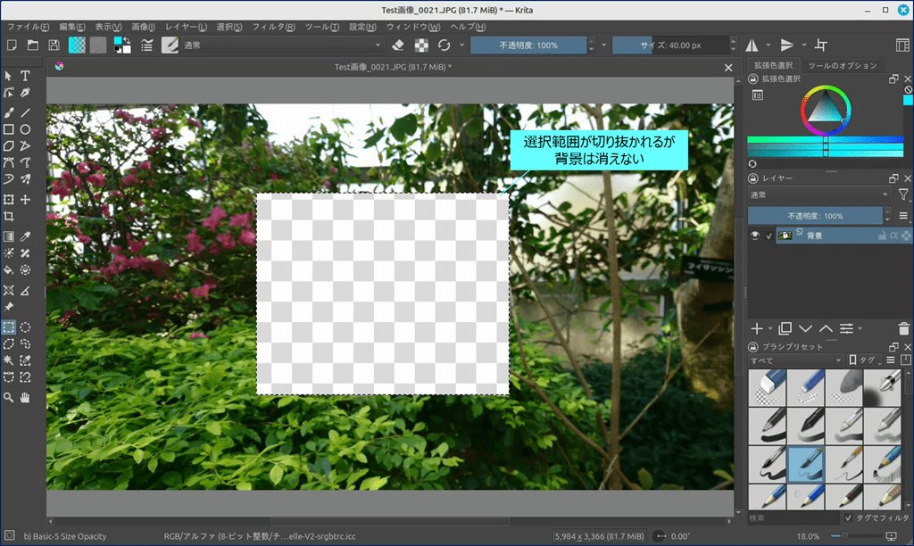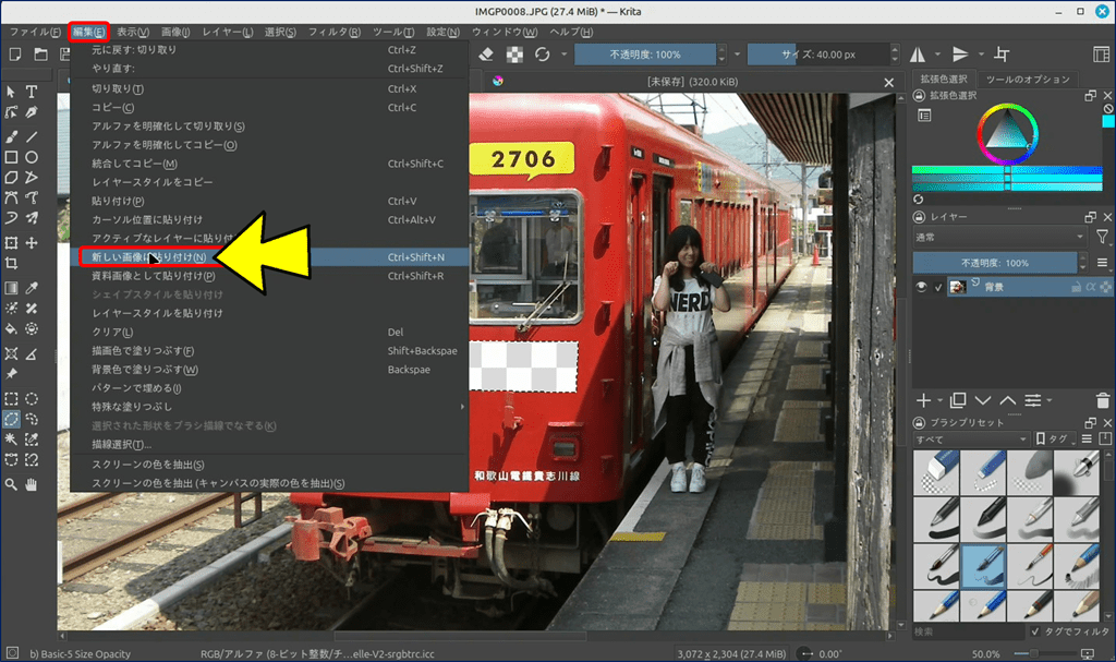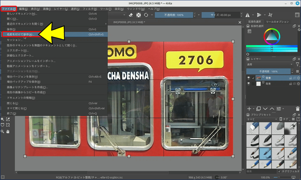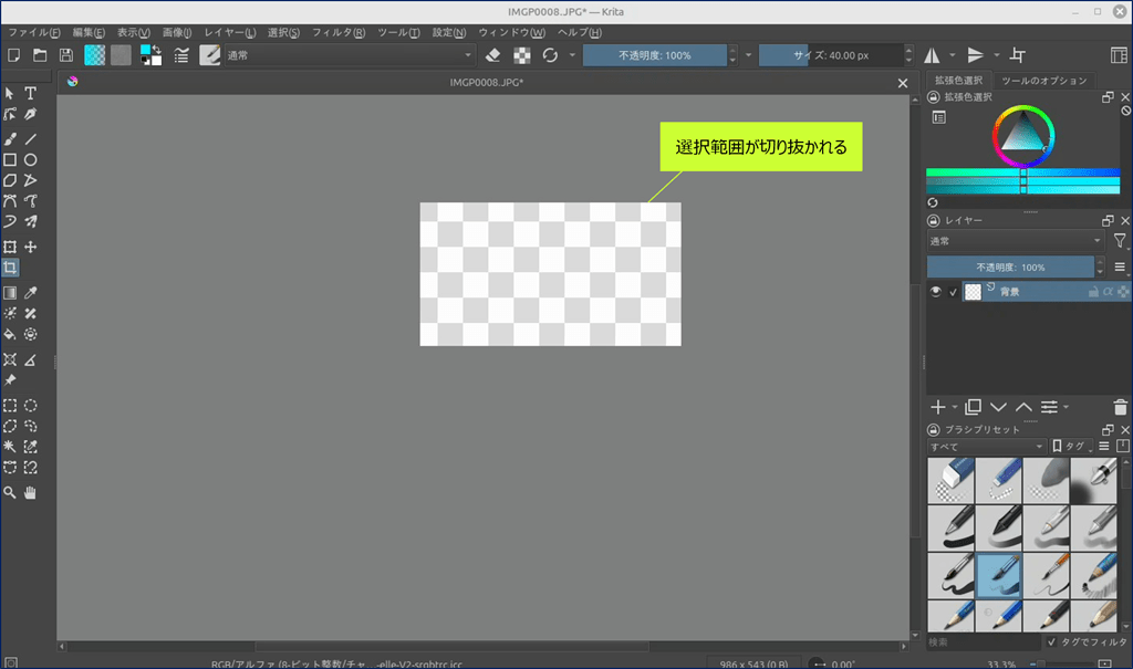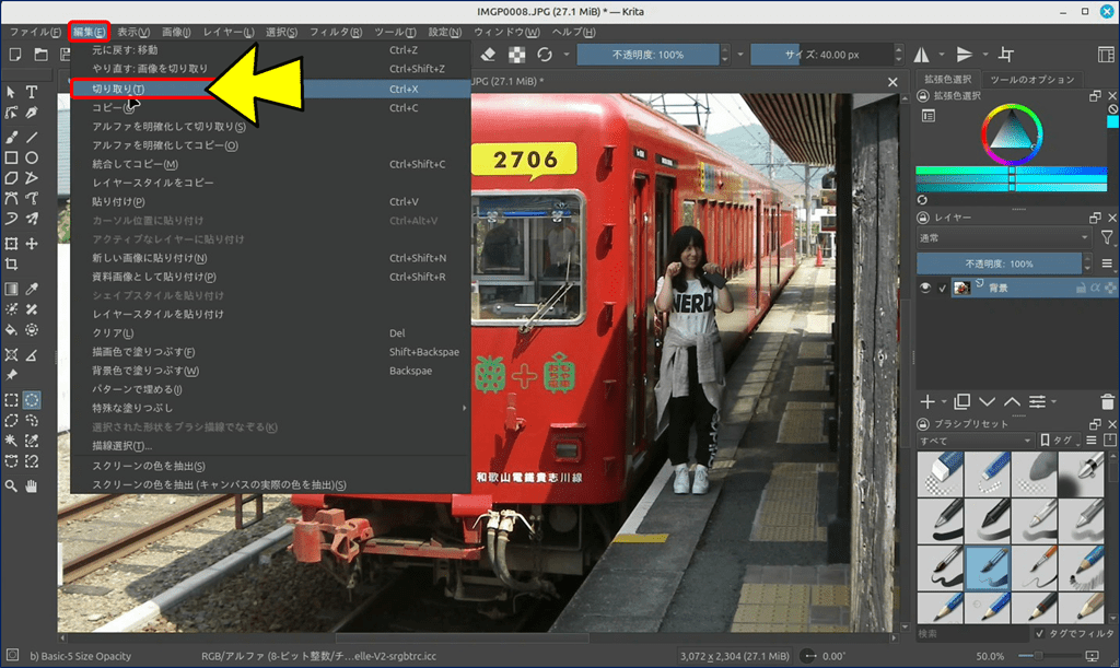 「Krita」は、MSペイントとは比較にならない高機能のグラフィック編集ソフトで、レイヤーの切り取りにも対応している。