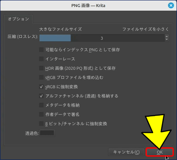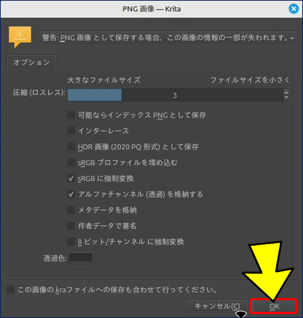 PNG 画像として保存する場合この画像の情報の一部が失われます。