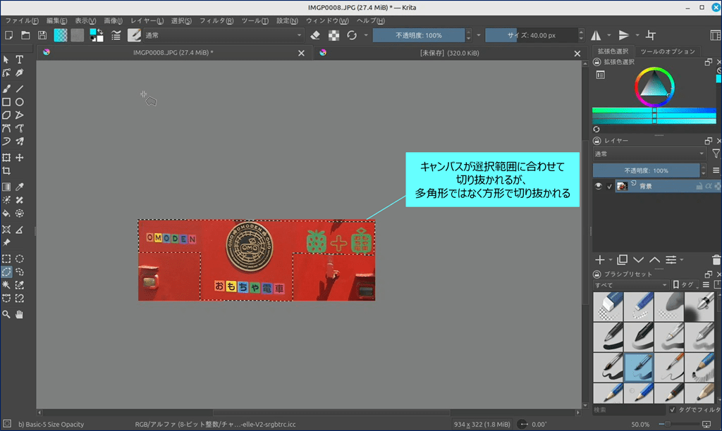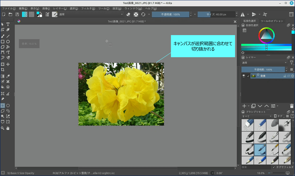 🔎 特徴:背景は消えず、キャンバスを範囲に合わせて切り取ることができる。