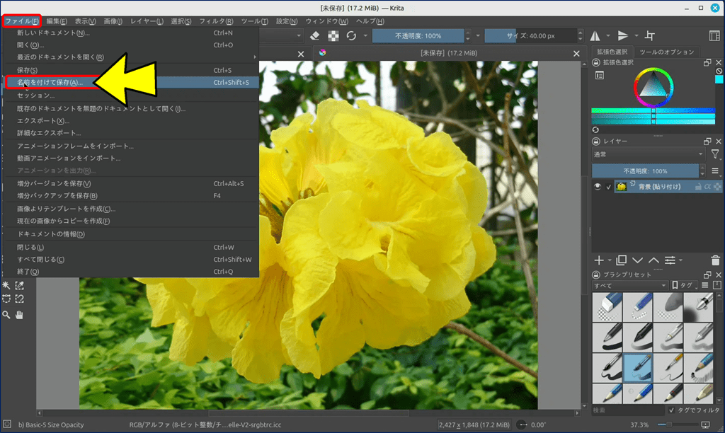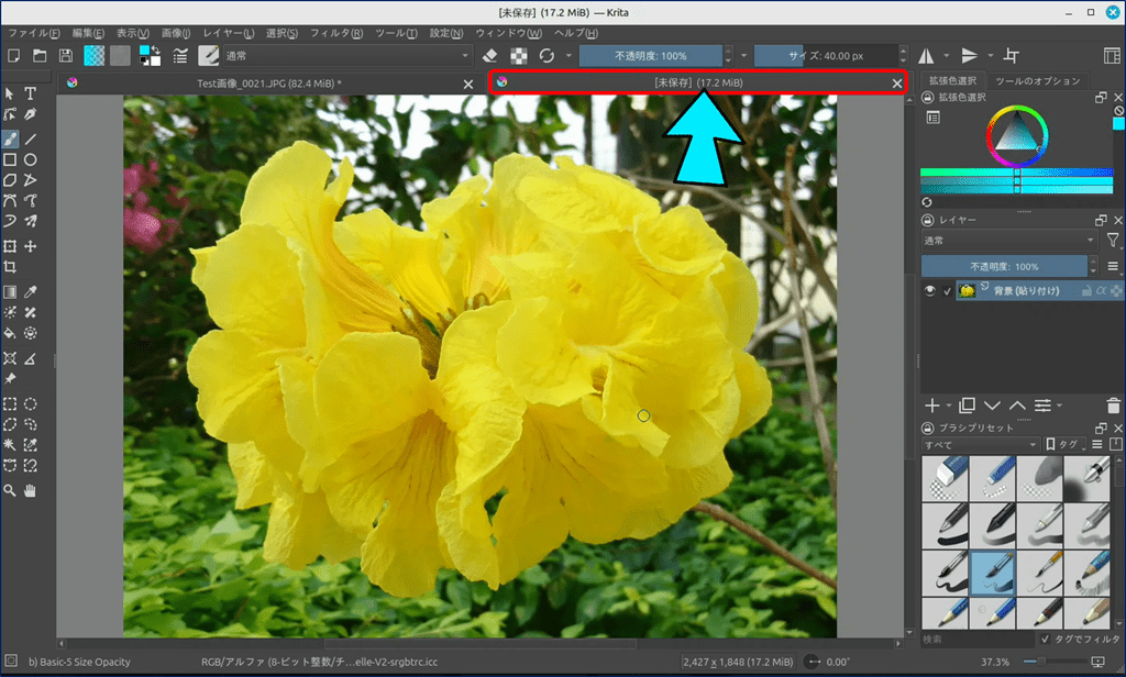 画像には、複数のレイヤー、マスク、またはアクティブな選択があります。統合された画像のみが保存されます。