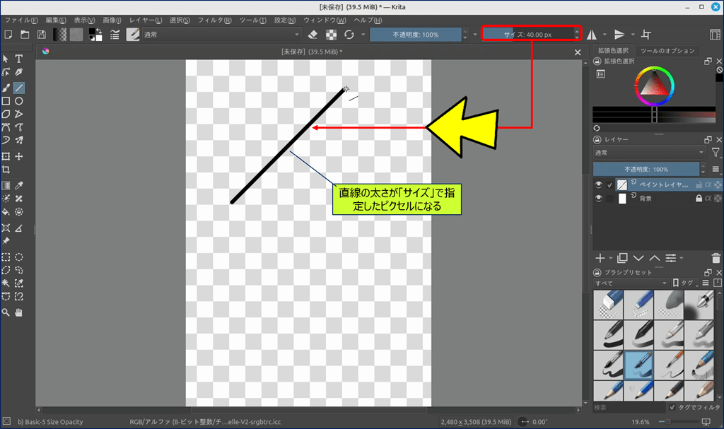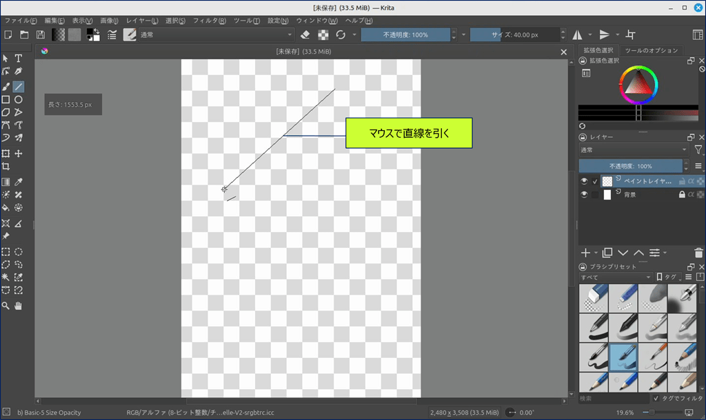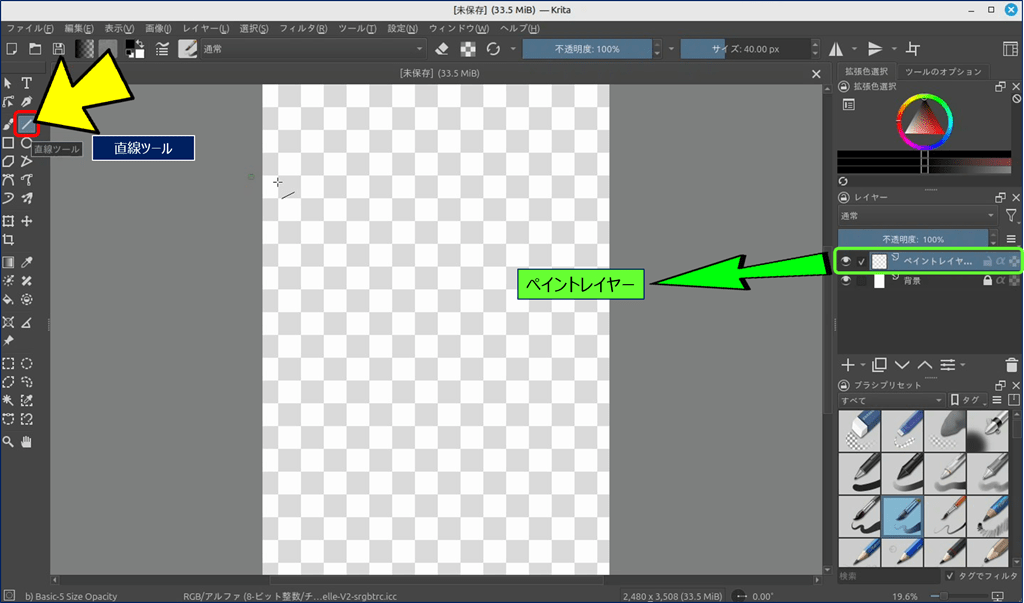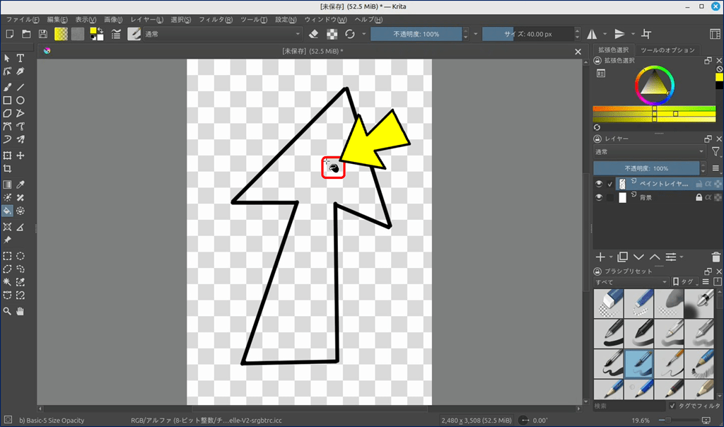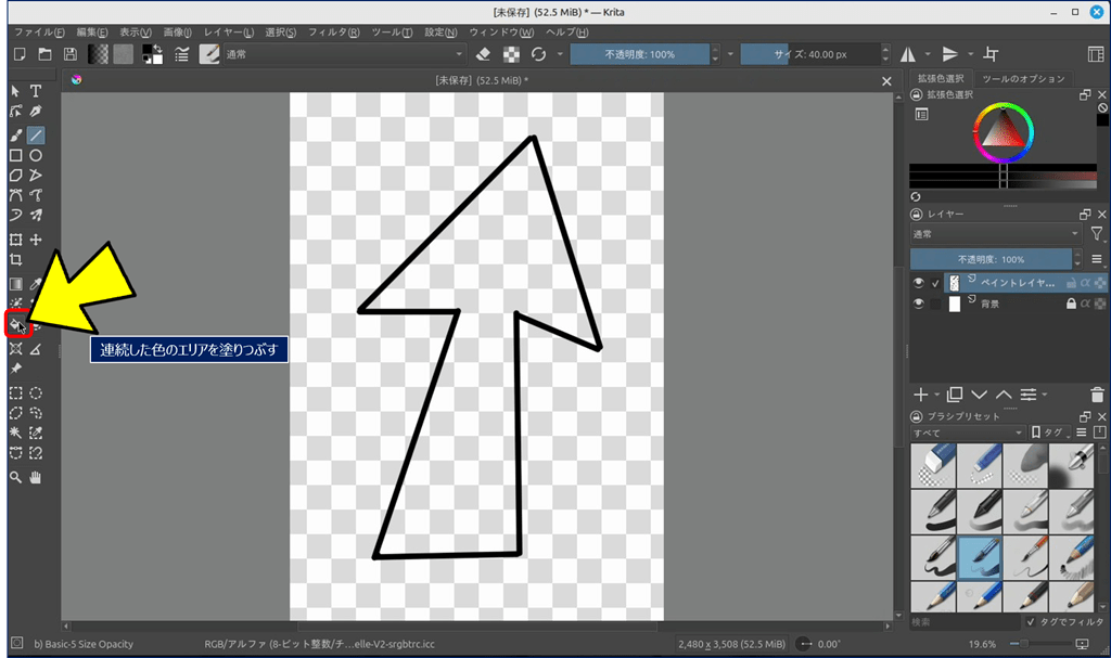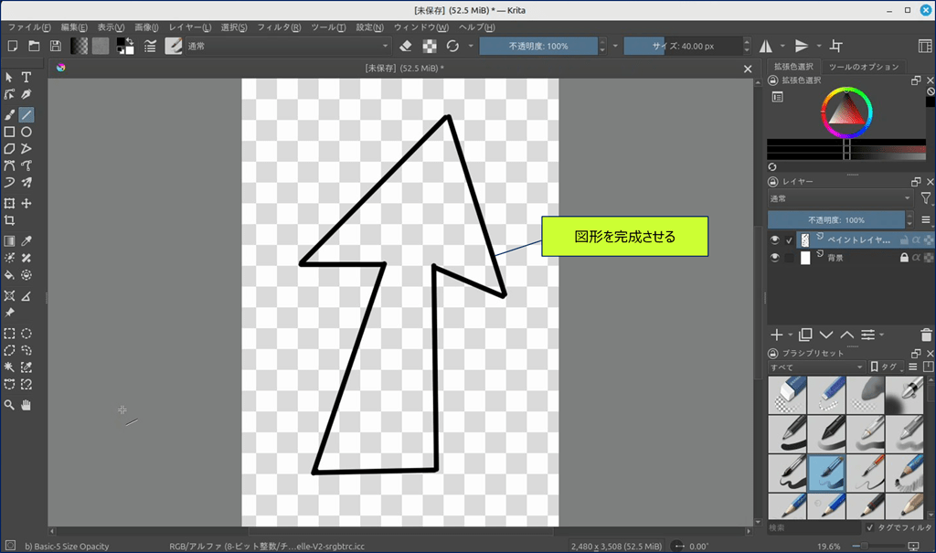 🔵 次に、透明な背景の上に、図形を描きます。(ペイントレイヤー)