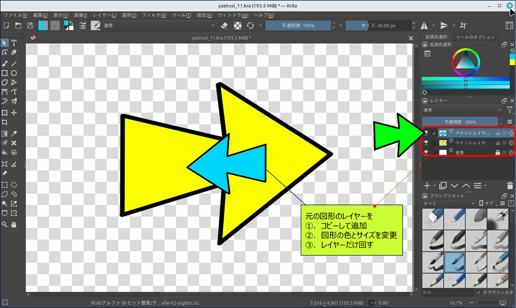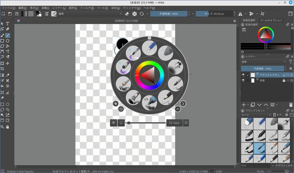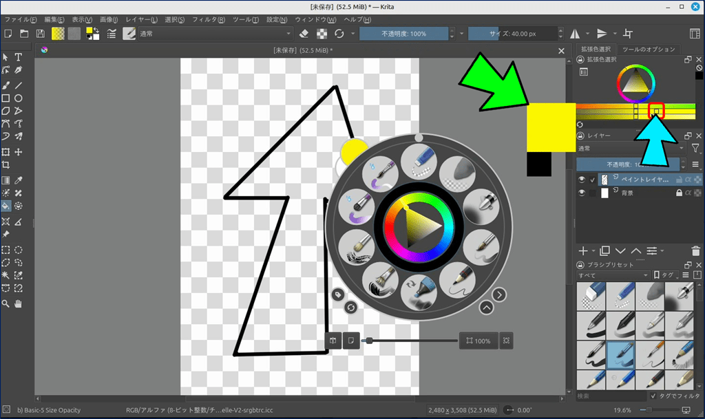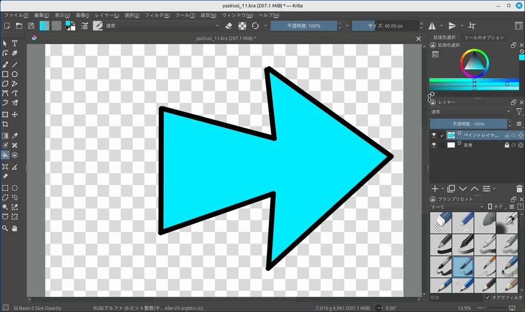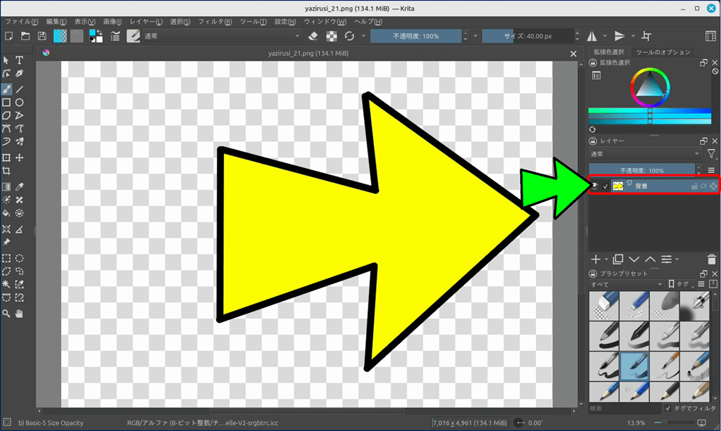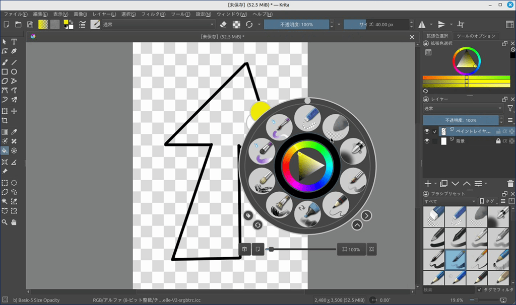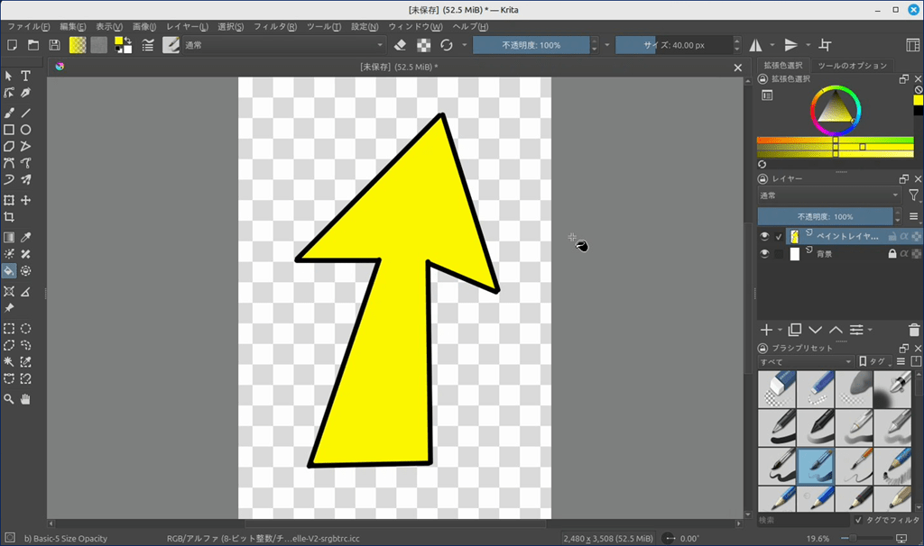 Krita は無料のオープンソースデジタルペイントソフトで、プロ級のイラストやグラフィックデザインにも使えるが、初心者でも、透明背景の図形作成なら直感的な操作で容易に行える。