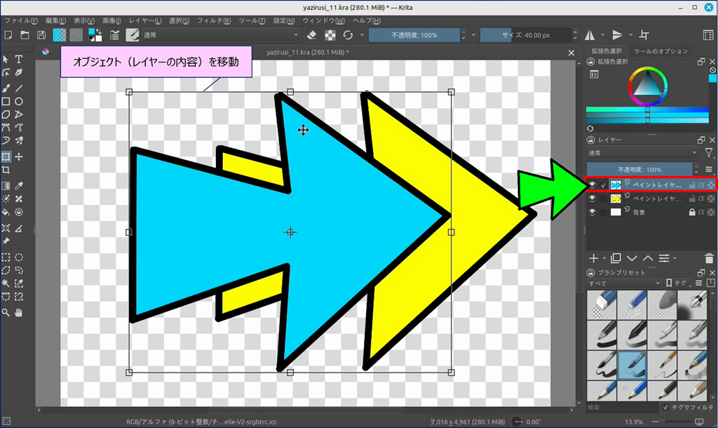 → オブジェクト(レイヤーの内容)を移動する。