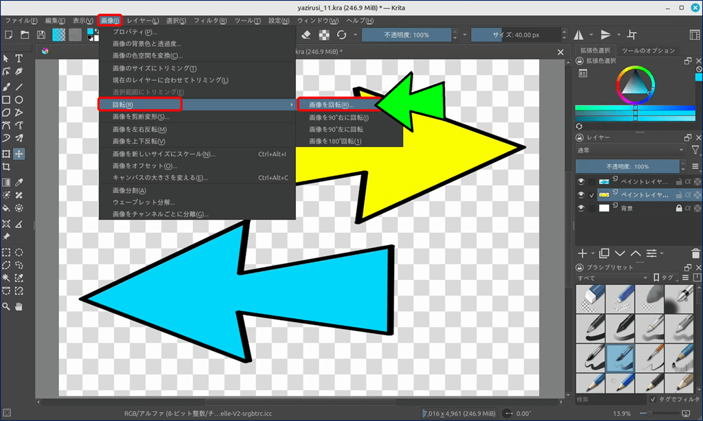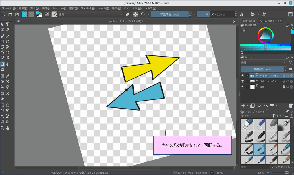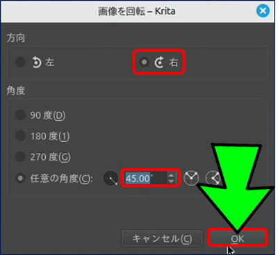 以上、Krita の、画像回転機能は、