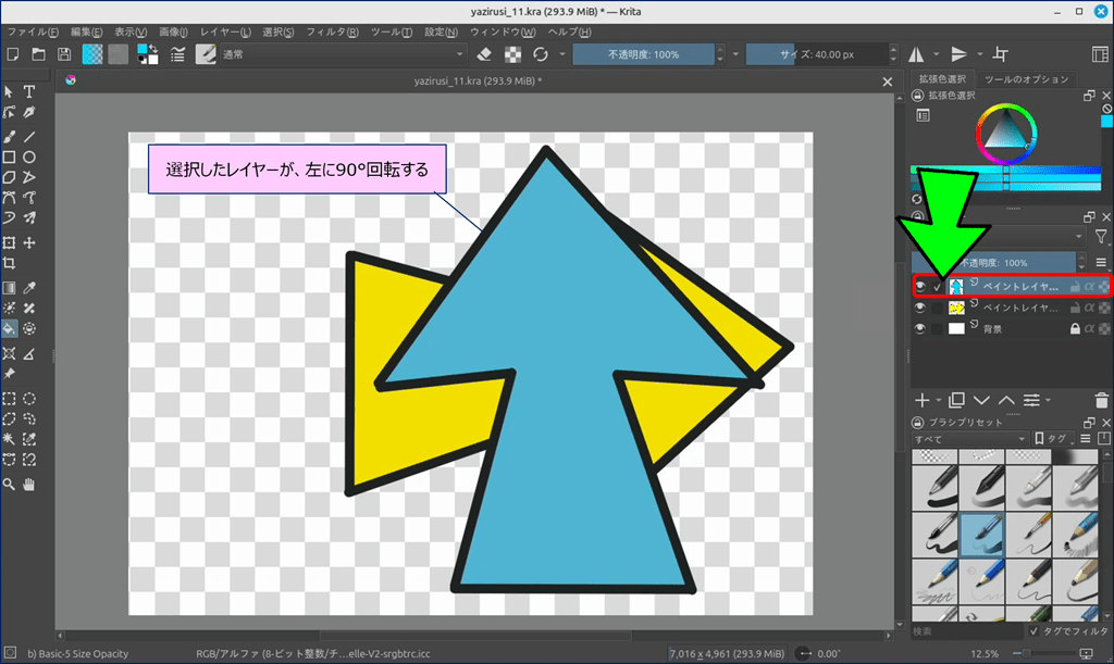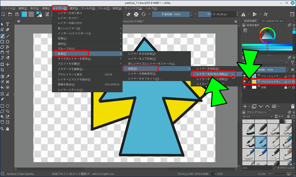 レイヤーを90°右に回転