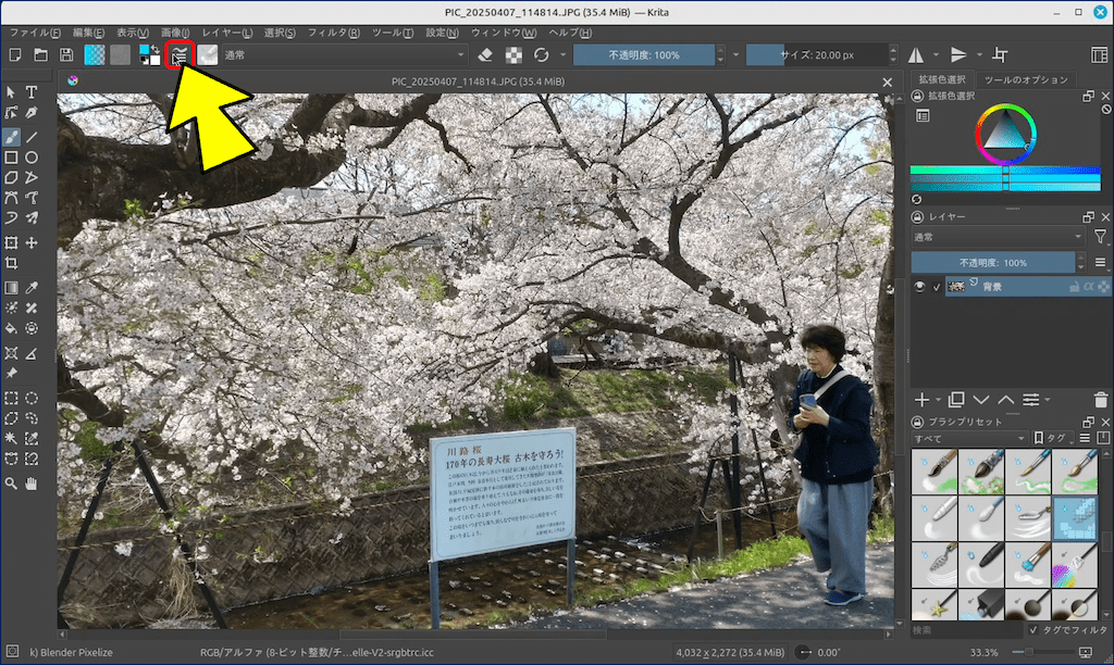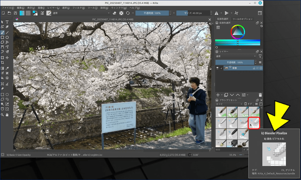以下、Krita で画像にモザイクを入れる手順を記録。
