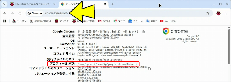 出力例:/home/hp-mint/.config/google-chrome/Default