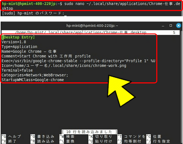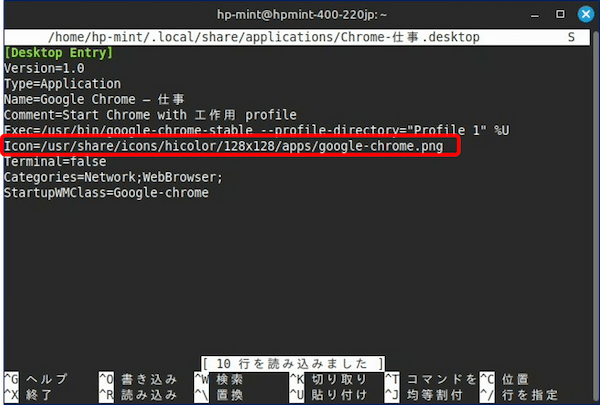 sudo nano ~/.local/share/applications/Chrome-仕事.desktop