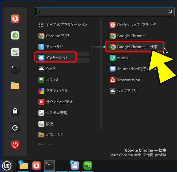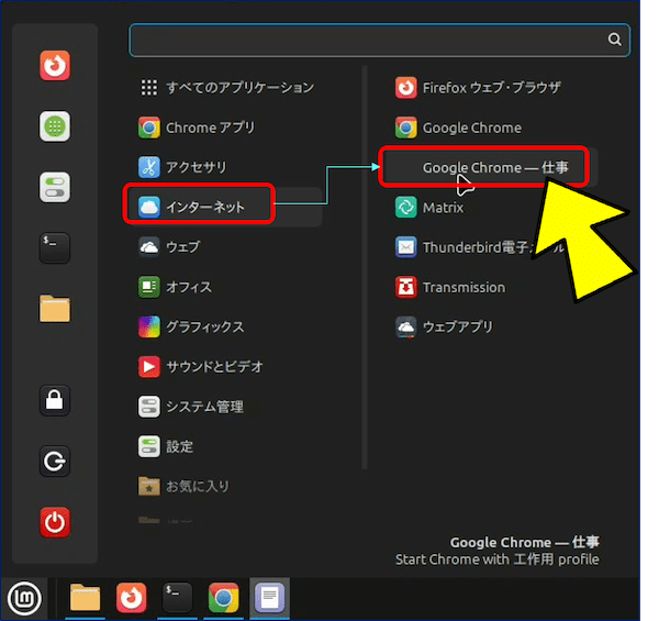 🔹 ファイル名を「Chrome-仕事.desktop」としています。適当に変更してください。