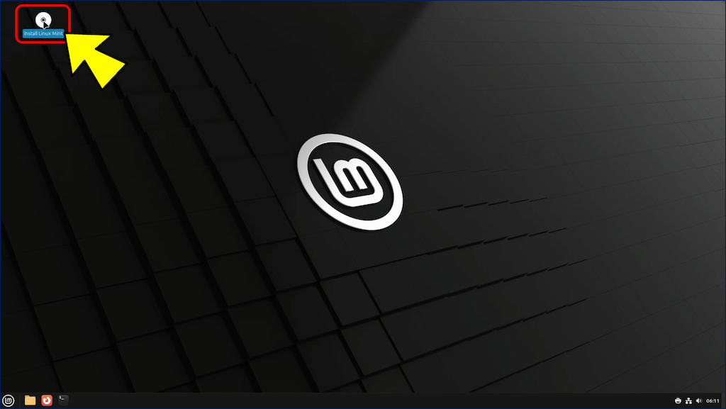 左上に表示されている「Install Linux Mint」のアイコンをダブルクリックすると、インストールが始まる。