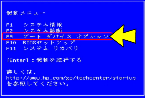 • F12 / F9 / F8 / Esc (マザーボードにより異なる)