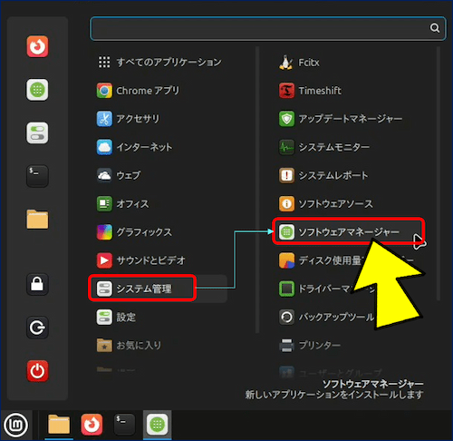 ![[メニュー] → [システム管理] → [ソフトウェアマネージャー]を選択する](https://arakoki70.com/wp-content/uploads/2025/11/gparted_1011.png)