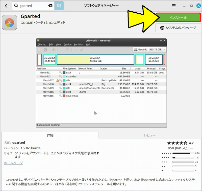 1. GParted のインストールと起動