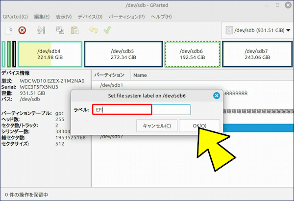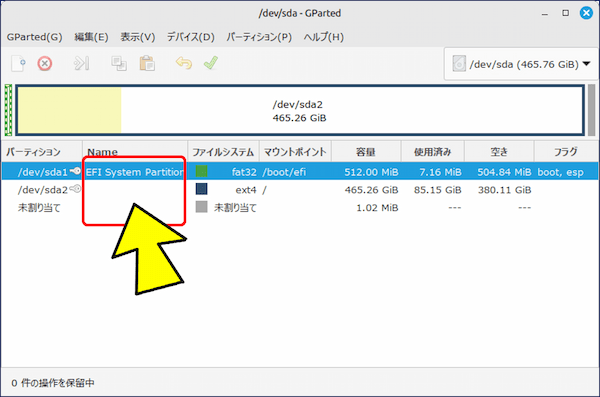 以下、GParted を使った、パーティションの作成・削除・サイズ変更からEFI システムパーティションの作成までを実例で記録。