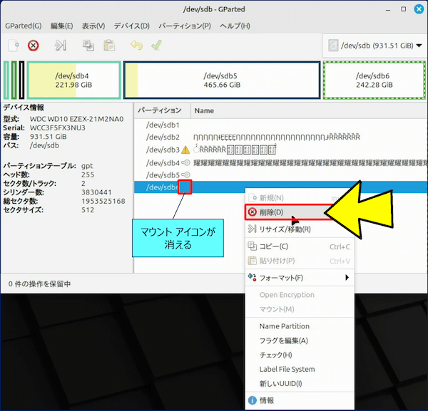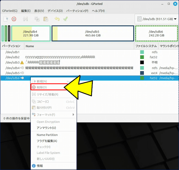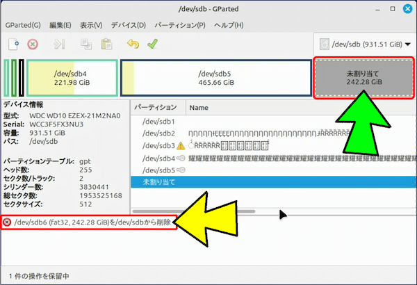 🟢 ①. パーティションの削除