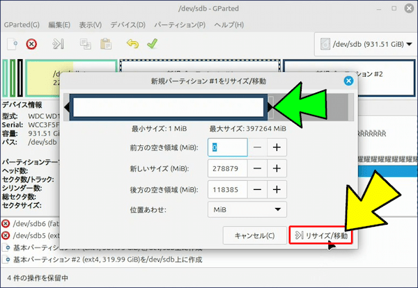 🟢 ③. パーティションのサイズ変更
