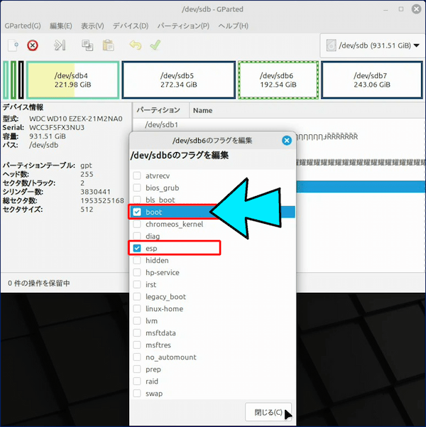 🔸 フラグ:boot, esp がセットされていること。 ← 📌 ここが重要