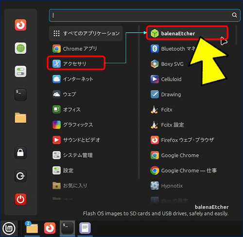 ![[メニュー] → [アクセサリ] → [balenaEtcher]で起動する](https://arakoki70.com/wp-content/uploads/2025/11/balenaEtcher-7_0011.png)
