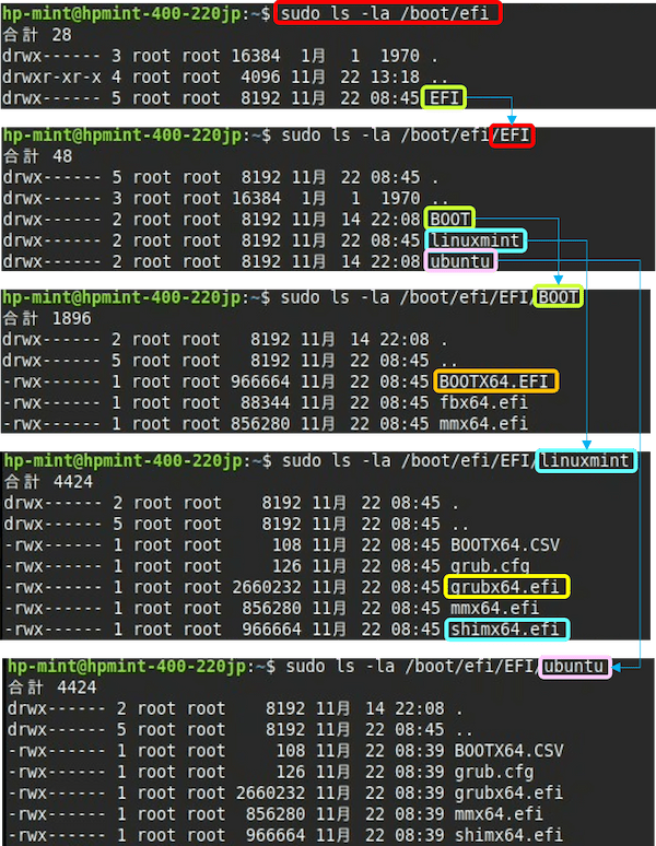 hp-mint@hpmint-400-220jp:~$ sudo ls -R /mnt/esp