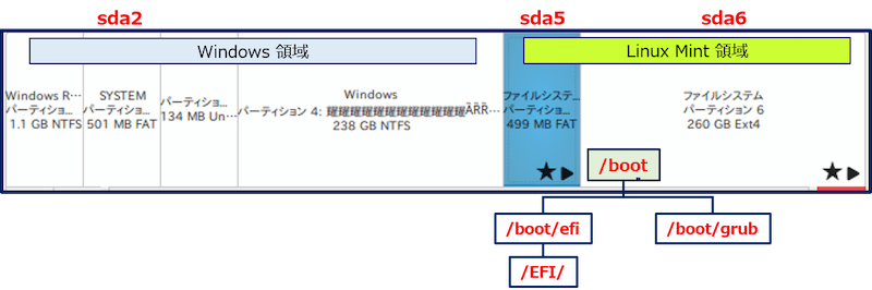 (hd0,gpt6) が、Linux Mint のルート・パーティション。
