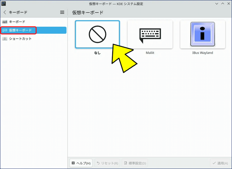 「仮想キーボード」に「Fcitx 5」を設定するだけで、