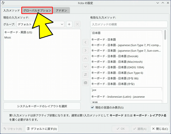 以下、Wayland 環境で「日本語入力を可能にする手順」をまとめた。