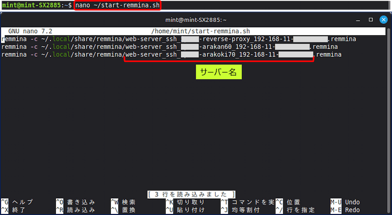 ./start-remmina.shシェルスクリプトの作成。