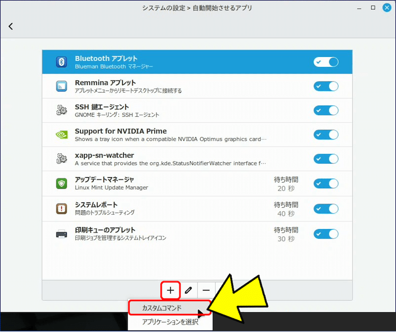 3. 自動開始させるアプリへの追加要領