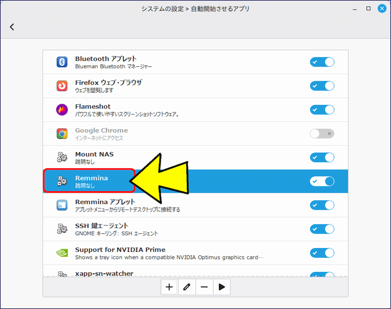 以上で、システムを起動すると Remmina が自動で立ち上がり、且つ、複数サーバーへの接続が自動で確立される。