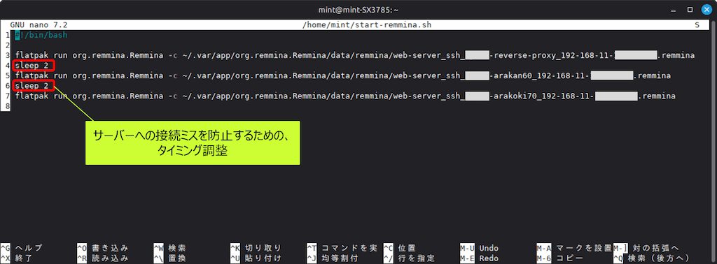 flatpak run org.remmina.Remmina -c ~/.var/app/org.remmina.Remmina/data/remmina/サーバー3.remmina📌 「sleep 2」: