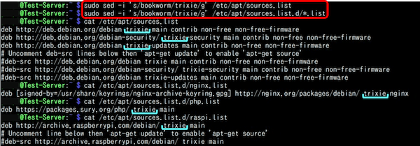 ✅ sed コマンドを用いて、リポジトリを (Bookworm -> Trixie)に書き換えることが出来る。